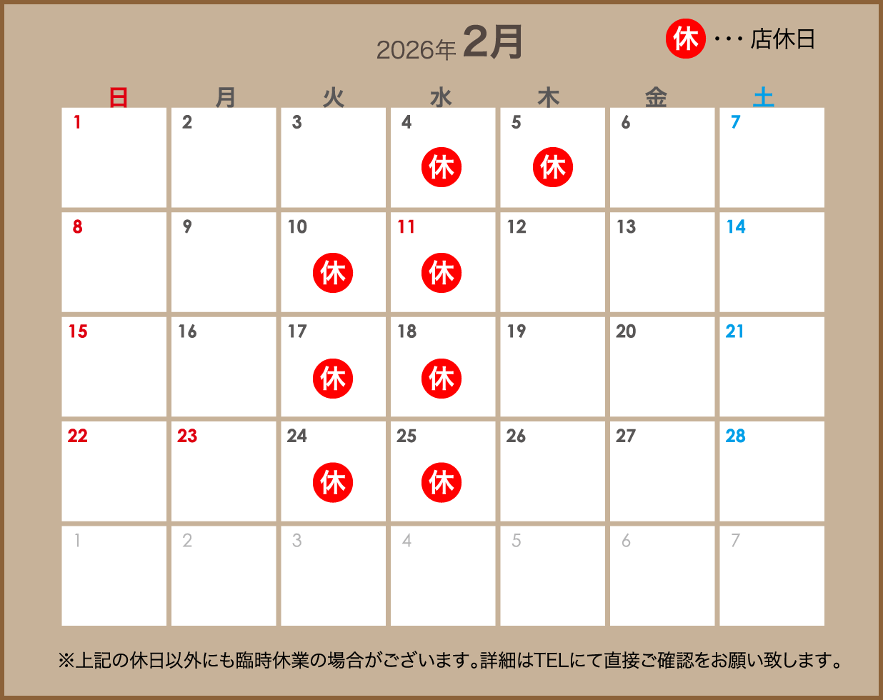 - 混み合う土・日・祝日はお早めにご注文いただければ幸いです。