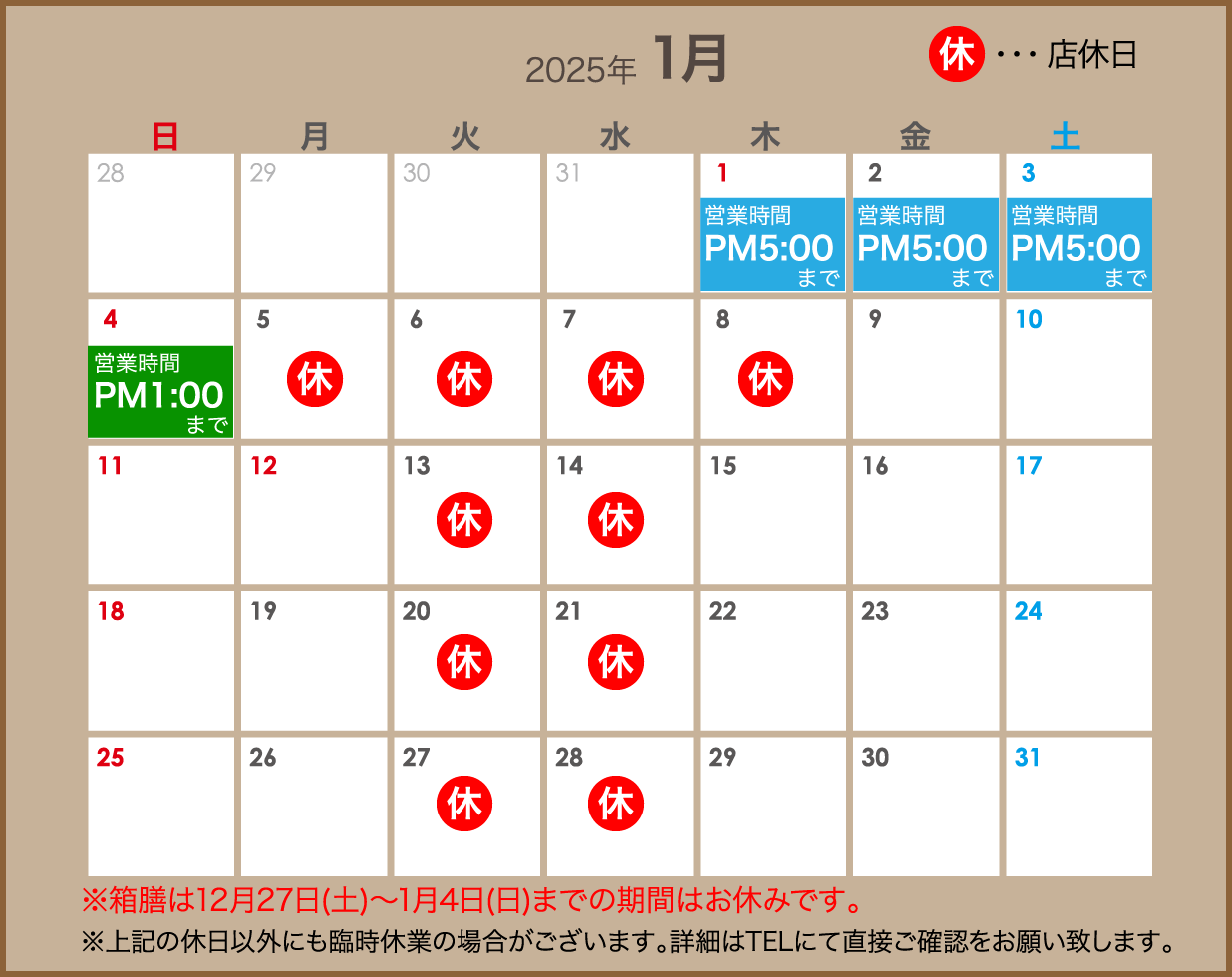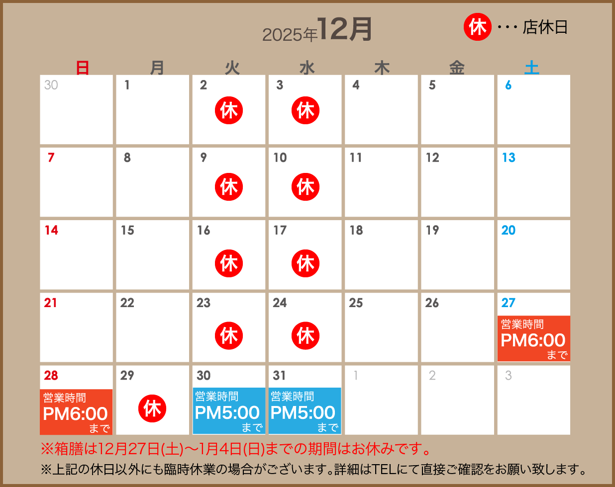 4. お盆・年末、年始の期間は、別途チラシを発行致します。